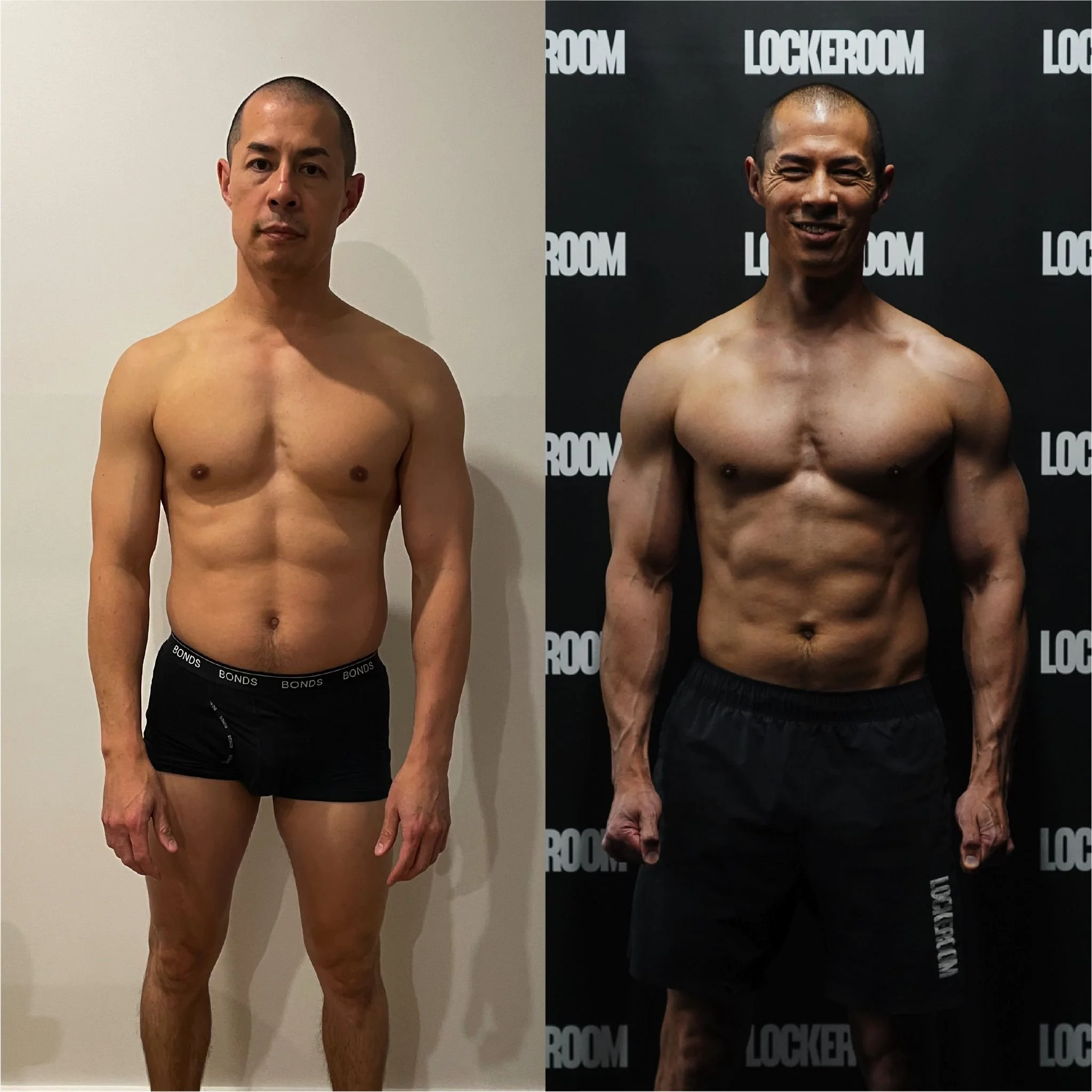 After a long strength and muscle building phase, where he reached a life time goal of being 80kg he decided to do a fat loss phase and got some rapid results.