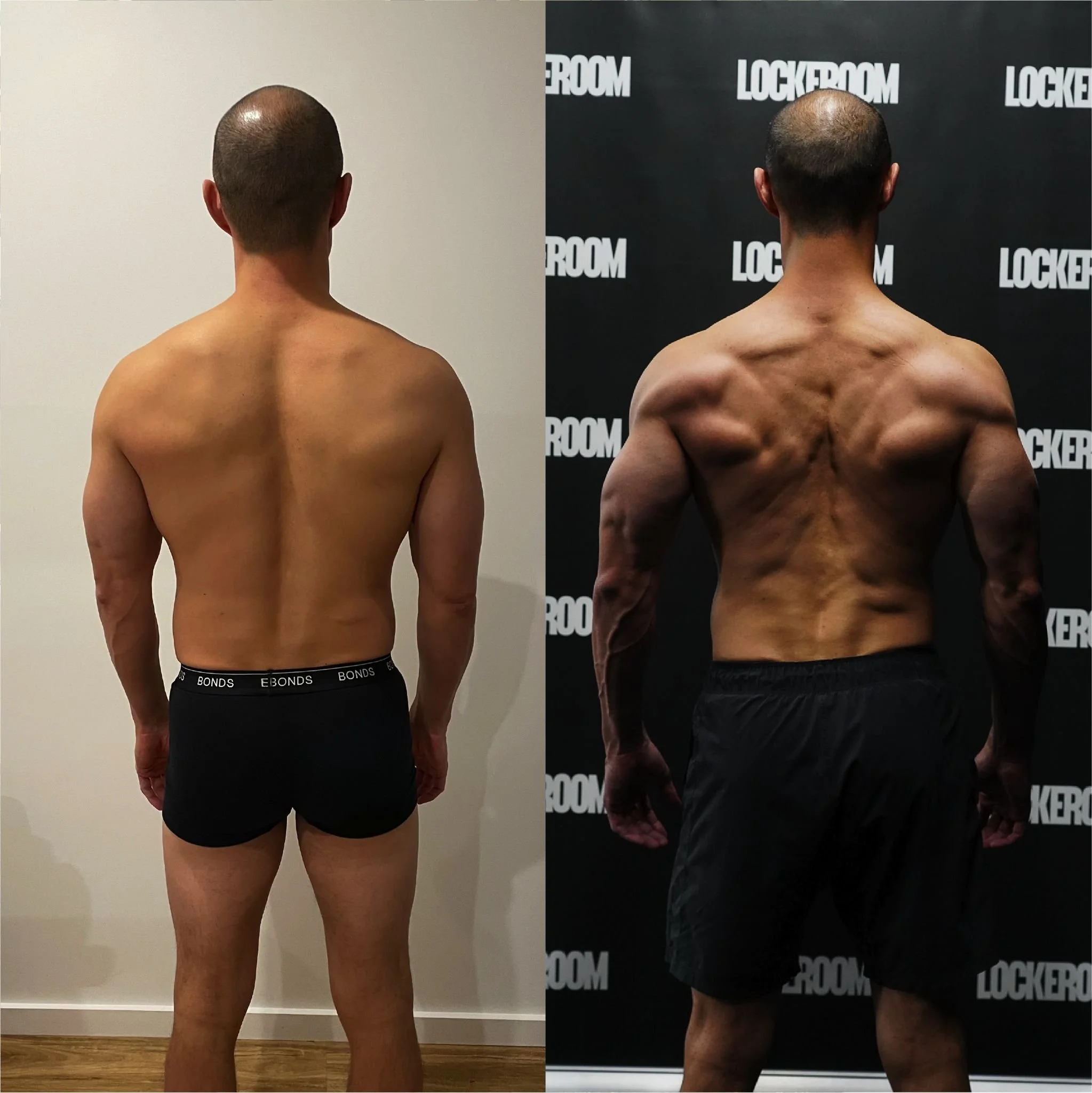 Over the next 3 years we built Justin from what he would call “skinny fat” with constant back issues to now a built, lean and pain free “super dad”.